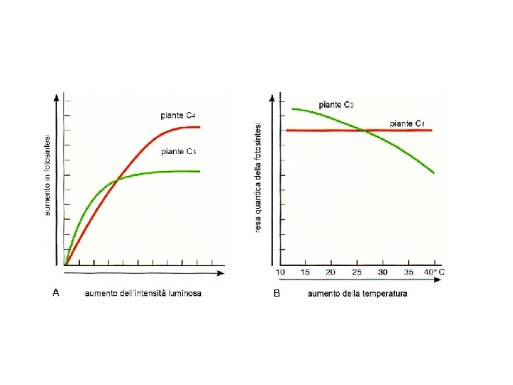 Piante CAM: lo svolgimento della fotosintesi avviene anche con gli stomi chiusi La fase luminosa e la fase buia sono infatti separate nel tempo: durante la notte la pianta apre gli stomi, permettendo l'ingresso della CO 2 che sarà fissata da un acido a tre atomi di carbonio (C 3), prevalentemente l'acido malico, accumulato nei vacuoli. Durante il giorno, a stomi chiusi, gli acidi C 4 accumulati nel corso della notte saranno metabolizzati nel ciclo di Calvin