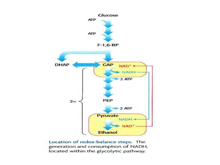 Alcoholic fermentation • NAD+ Needs to be Recycled to Prevent Decrease in Oxidation Reactions • So NAD + will be present for further glycolysis to take place