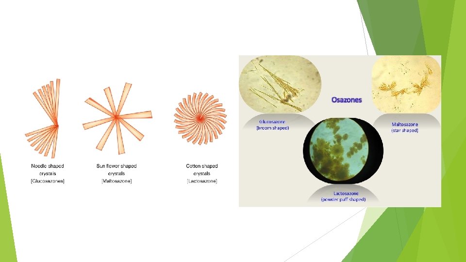Identification of Monosaccharides (glucose & fructose) 4 - Ozazone test: 5 ml sugar soln. 0. 5 g Phenylhydrazine HCl 1 g Sodium acetate Heat on W. B. for 15 min. Yellow ppt. on hot, when examined under microscope shows tufts of needles. Both glucose and fructose give the same ozazone Why?