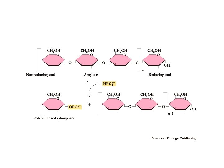 Why branching in Starch? Consider the phosphorylase reaction. . . • Phosphorylase releases glucose-1 -P products from the amylose or amylopectin chains • The more branches, the more sites for phosphorylase attack • Branches provide a mechanism for quickly releasing (or storing) glucose units for (or from) metabolism