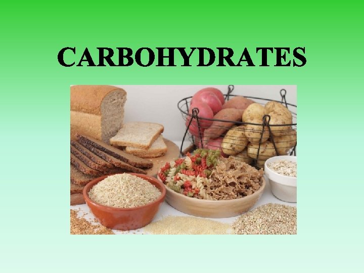 • “simple carbohydrates” = SUGARS! • “complex carbohydrates” = whole grains, potatoes, beans, etc.