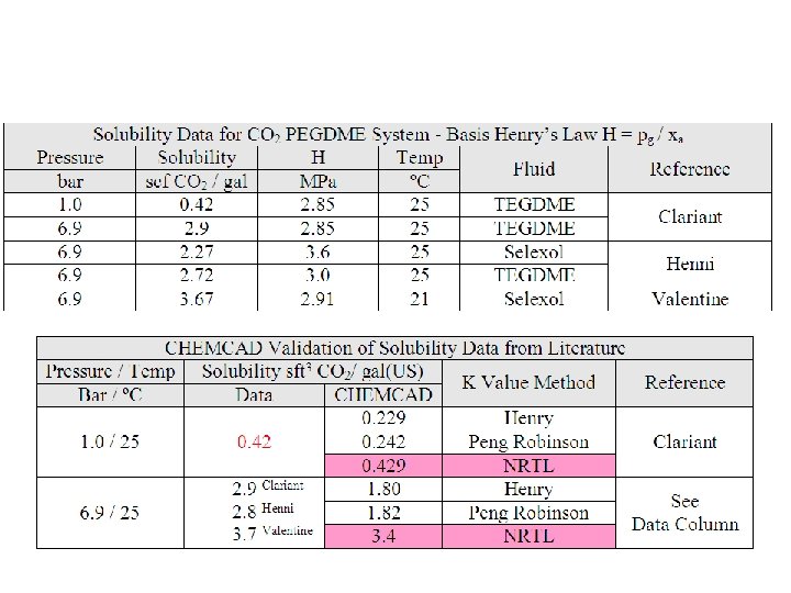 SELEXOL CO 2 ABSORPTION SIMULATION COMMENTS 1. NRTL bip regression method for partial pressure needed 2. CO 2 User Component (UC) behaviour to validate 3. SCDS Mass Transfer convergence sensitive with (UC) 4. SCDS Mass Transfer matrix report to be simplified 5. PR (H 2 O Immiscible) with special bip feature to prove 6. Henry’s Law Coefficients for User Components 7. Random and structured packing data very limited 8. Sulzer packing sizing link needs finishing