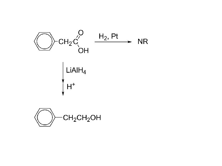 3. Reduction: 4. 5. RCO 2 H + Li. Al. H 4; then H+ RCH 2 OH 1 o alcohol 6. Carboxylic acids resist catalytic reduction under normal conditions. 7. RCOOH + H 2, Ni NR
