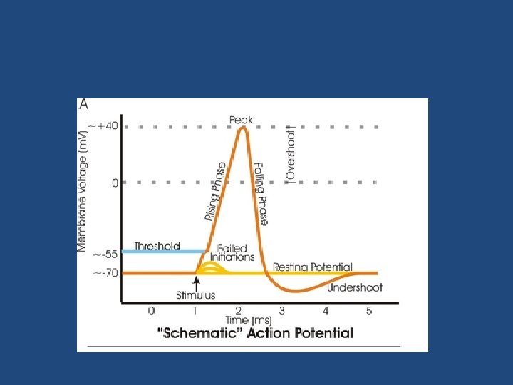 Some terms • Strength of stimulus required to elicit a response or to produce an action potential. • Hyperpolarisation decreases excitability • Small reductions in RMP increase excitability • When RMP is less than the threshold potential the fibre becomes inexcitable Threshold potential- potential at which net inward membrane current becomes large enough to initiate autoregenerative depolarization