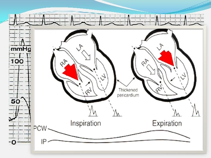 PA and Ao. Tracing ? SPAP> 55 mm Hg Pulsus Paradoxus (Ao. ) Insp. Exp. Pulsus Paradoxus