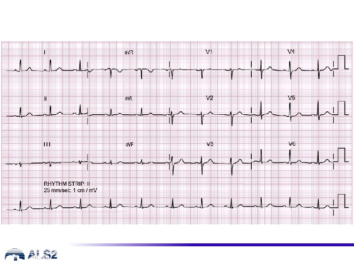 Case 1 (continued) Circulation • Assessment – – regular radial pulse , rate 100 min-1 BP 110/65 mm. Hg, CRT <2 s normal heart sounds ECG monitor • request 12 lead ECG (next slide) – bloods including troponin • Treatment/Action – – venous/vascular access aspirin to chew sublingual nitrate/GTN IV fentanyl/morphine