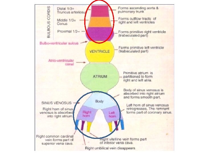 Arterial end of the heart tube • BULBUS CORDIS – proximal part called the conus – a distal part called truncus arteriosus. – The truncus continues distally with the aortic sac.