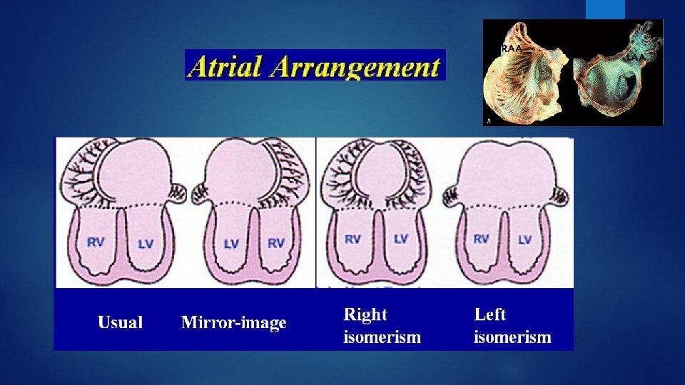 Situs Ambiguus right atrial (asplenia) or left atrial (polysplenia) isomerism Dextrocardia with situs ambiguus was the most common