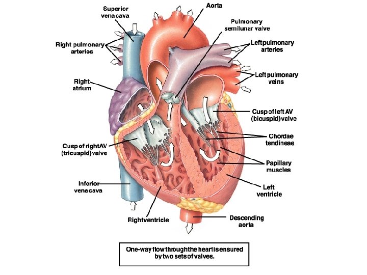 Semilunar valves • Between ventricles and arteries – Pulmonary valve between right ventricle and pulmonary artery – Aortic valve between left ventricle and aorta