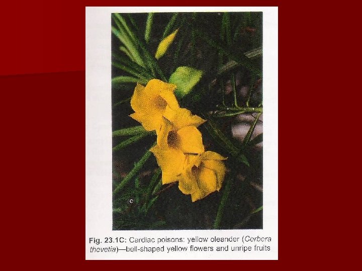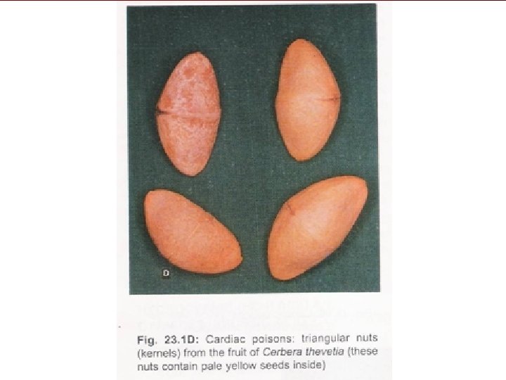 Active Principles: 3 glycosides Thevetin , Thevotoxin, Cerberin Glycosides are substances found in plants & are composed a sugar & a non – sugar compound, the latter having a toxicological action. n Thevetin Is a powerful cardiac poison. n Thevotoxin is less toxic n Cerberin has an action like strychnine. n