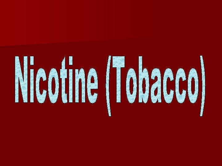 Medicolegal Aspects n n n Nicotine is drug of addiction & leads to psychological dependence. Chronic use leads to chronic problems with disability & decreased life expectancy. Accidental poisoning occures from 1. 2. 3. 4. 5. Chewing a large dose Ingesting of decoction (concentrated water extract) Absorption thought skin when applied as a poultice Excessive smoking Exposure to fertilizes insecticides & fumigants.