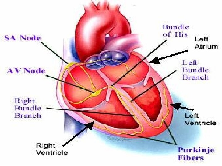 + CARDIAC IMPULSES n SINOATRIAL NODE (SA NODE) – found in the wall of the right atrium and acts as the hearts pacemaker because it initiates each heart beat n ATRIOVENTRICAL NODE (AV NODE) – found near the bottom of the right atrium. Receives electrical signal from the SA node and passed onto the Bundle of His and Purkinje Fibres n PURKINJE FIBRES – deliver electrical signal to the cardiac muscles which signals the ventricles to contract