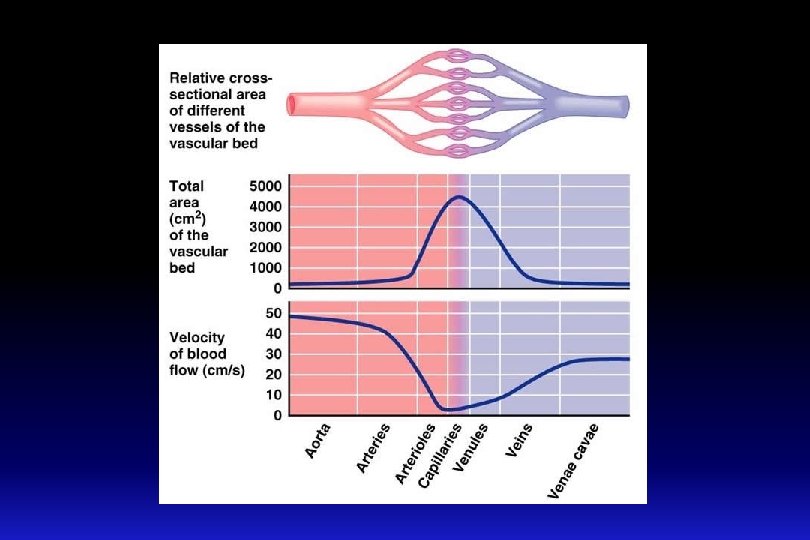 The microcirculation q The microcirculation refers to the microscopic divisions of the vascular system that function to bring exchange of materials (nutrients and oxygen) between the blood and various body tissues. q it also functions to drain waste products from tissues to blood. q It also plays a role in temperature regulation. q The capillary bed is composed of a series of blood vessels through which adequate exchange of gases, nutrients and wastes take place. q How much is the blood flow velocity in the capillaries?