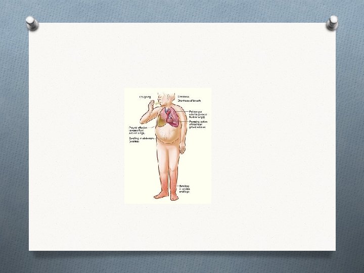 CHF O Congestive Heart Failure O Inadequate pumping of the heart O Left sided heart failure O May be brought on by Diseased heart valves HTN COPD