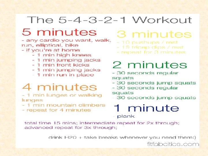 Some forms of Cardio • • Walking/running Cycling Plyometric Elliptical Aerobics videos Swimming Skiing Rowing • Kick Boxing