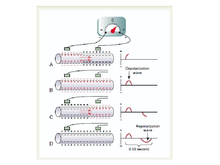 The Electrocardiogram When a positive wave of depolarization within the heart cells moves toward a positive skin electrode, there is an upward deflection on the ECG