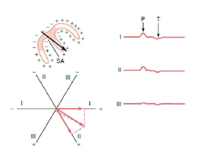 The Electrocardiogram P-WAVE l The first positive deflection on the ECG. l Atrial depolarization