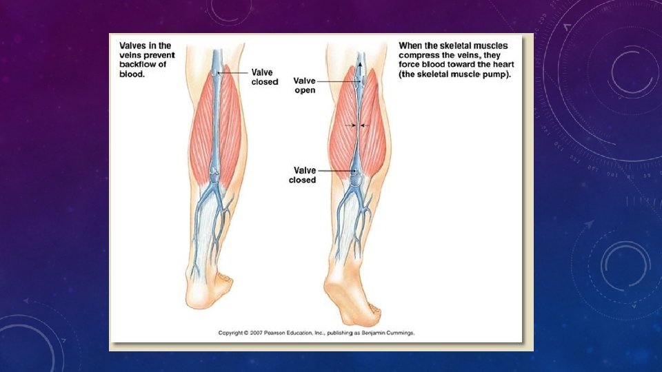 VENULES AND VEINS • Deoxygenated blood from capillaries flows to venules • Venules have slightly thicker walls and are wider than capillaries • From venules blood flows into veins • Veins have slightly thicker walls and are wider than venules • Both venules and veins have valves which prevent back-flow of blood • Low pressure in veins requires this as there is not enough force to keep blood flowing back to the heart. • https: //www. youtube. com/watch? v=HNu. PWdfj. Doc • Blood flows back to the heart via veins with the help of skeletal musclular pumps • As muscles move they compress the veins pushing blood up towards the heart
