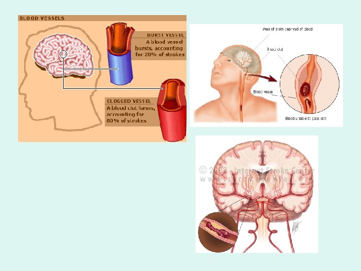 Stroke, Heart Attack and Aneurysm cardiovascular accident (CVA) or stroke blocks oxygen delivery to a portion of the brain. Myocardial infarction (MI) or heart attack occurs when a portion of heart muscle dies due to lack of oxygen. Angina pectoris, or pain in the chest and left arm indicates a partial blockage of one of the coronary arteries. aneurysm is a ballooning of an artery usually in the abdominal cavity. If a major vessel bursts, death is likely.