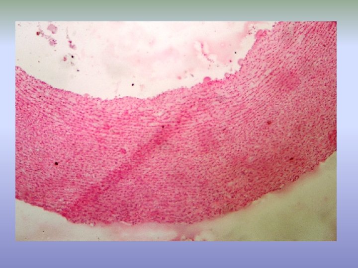 Large arteries Called: elastic arteries & conducting arteries. They include aorta and its large branches: common carotid and subclavian. Structure: 1. Tunica intima: It is thicker than that of muscular arteries. It consists of: -Endothelium. 2. -Subendothelial layer of loose connective tissue. - The internal elastic lamina (difficult to recognize). 2. Tunica media: thick and consists chiefly of series layers of fenestrated elastic laminae between which smooth muscle cells are present. The large amount of elastic tissue present in the media allows the arterial wall to become distended by the blood ejected from the heart during the cardiac systole. 3. Tunica adventitia: It is a thin layer of loose connective tissue rich in collagen fibers. It contains vasa vasorum lymphatic vessels and nerve fibers.