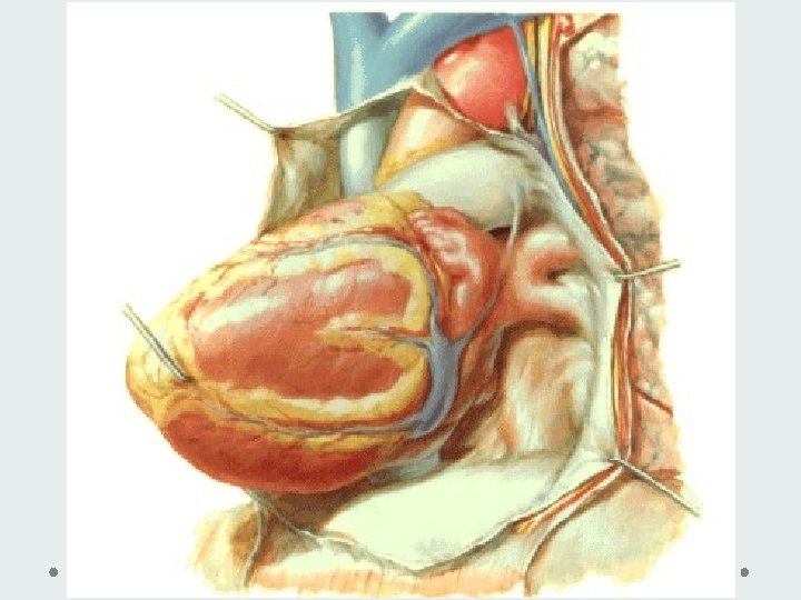 Lymphatics: Truncus lymphaticus anterior sinister + truncus lymph. post. – nodus lymph. retroaorticus Truncus lymph. ant. dx. – nodus lymph. praeaorticus Nerves: Plexus cardiacus spf. (ganglion cardiacum) Plexus cardiacus prof. Plexus coronarius dx. et sin. Nn. cardiaci (symp. ) – accelerantes Rr. cardiaci (parasymp. ) – retardantes