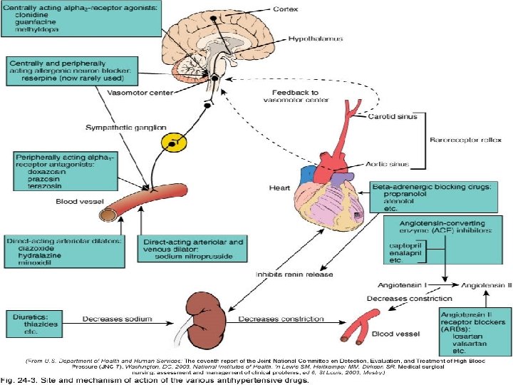 Antihypertensive Drugs Centrally and Peripherally Acting Neuron Blocker ◦ Reserpine The only centrally and peripherally acting neuron blocker still available in the United States, but is rarely used Seldom used because of frequent adverse effects