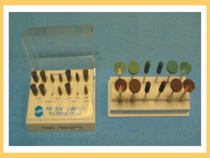 Porcelain • If the porcelain restorative material becomes rough: – Can increase wear of the opposing dentition – Increase the susceptibility to stain and dental caries. – Periodontal inflammation can occur is the gingival margins are not adequately polished.