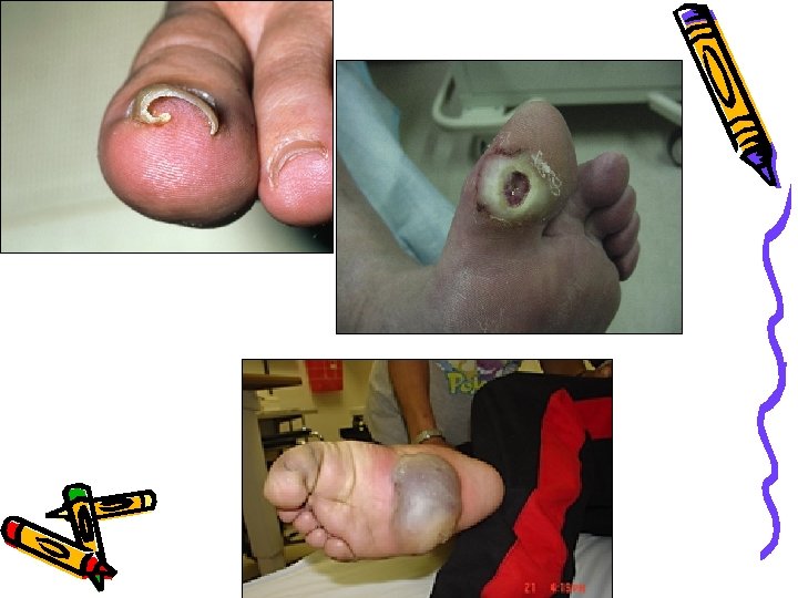 AND WHAT IF WE DON’T TAKE CARE OF FEET? 1. WE CAN HAVE LOSS OF SENSATIONS IN OUR FEET“NEUROPATHY”. 2. WE CAN HAVE INFECTIONS, ABSCESSES ON THE FEET. 3. COULD BE EVENWORSE – GANGRENE OF THE FOOT.
