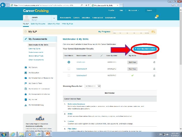 Start A New Matchmaker Session! Click My Assessments