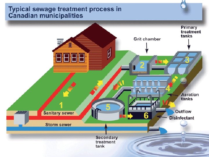 Wastewater Treatment Processes Three wastewater sources 1. Domestic –households, schools, etc 2. Industrial – pretreated on-site 3. Storm water –rain water Collection system – gravity flow Processes – grit/solids removal; aeration; disinfection, Sludge digestion – energy production, solids