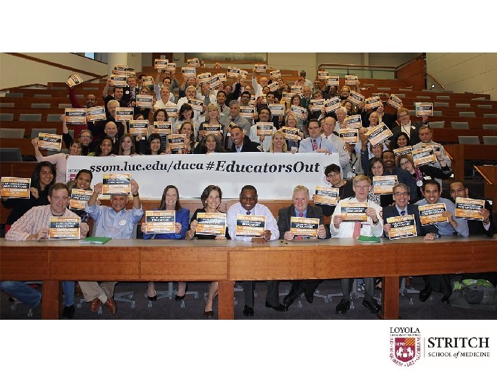 Welcoming “Through the Front Door” 1. 2. With advent of DACA, non-discrimination joins social justice as important concern – analogy to civil rights era (If no DACA, is there still an analogy to Jim Crow era of segregation, apartheid? ) 3. Dean Linda Brubaker, MD, ordered Admissions Eligibility Criteria amended to welcome applications from persons of DACA status in Fall of 2012: ssom. luc. edu/daca 4. Enlistment of community support through announcing intentions. Aimed to achieve a financial aid package comparable to other students 5. Becomes a “teachable moment” within life of school – opens out to bigger immigration issues 6. 7 DACA recipients in Class of 2018; 14 more in Class of 2019, 8 in Class of 2020