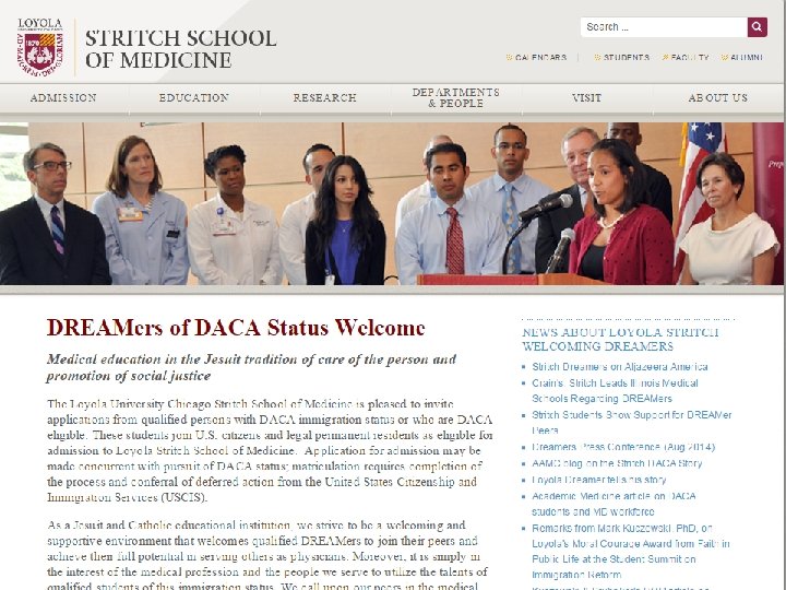 Discovering DREAMers The Loyola Stritch SOM Story An e-mail arrived (May 2011). . . A professor at a Jesuit university enquired of the medical school prospects for his student • Near-perfect GPA • Pre-Med double major in Biology & Spanish • Strong volunteer service record • Does not have an authorized immigration status, i. e. , is what is sometimes called a DREAMer