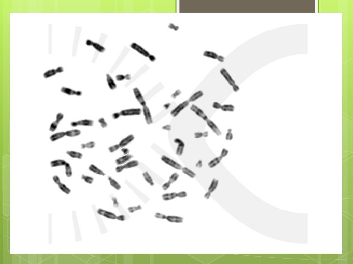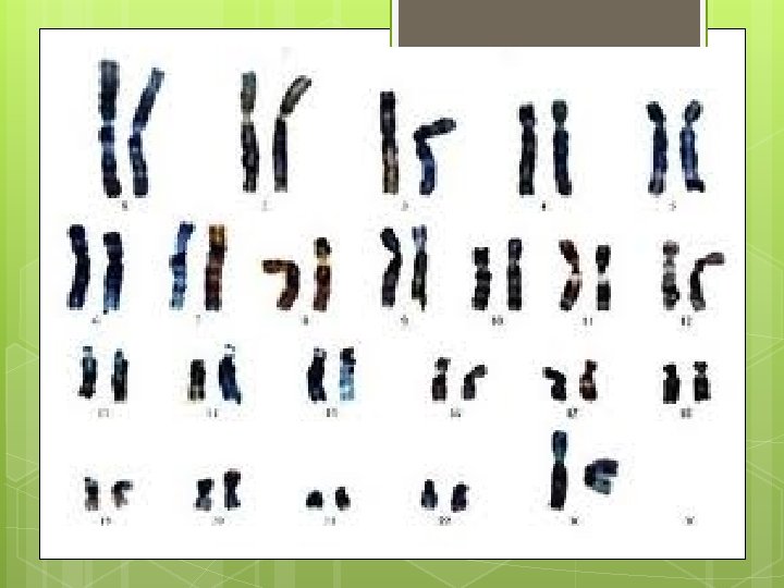 Cariótipo/Idiograma Conceito Conjunto de cromossomos contidos nas células de um organismo, organizados em ordem decrescente de tamanho. Sp. Humana = 46 cromossomos Células somáticas - diploides(2 n).