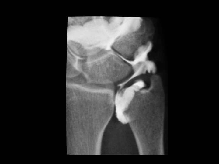 Lunotriquetral Dissociation • Heterogeneity of clinical symptoms from asymptomatic tears to collapse of the carpus with a fork-like deformity of the wrist. • Generally pain aggavated with ulnar deviation. • Sensation of weakness or instability.
