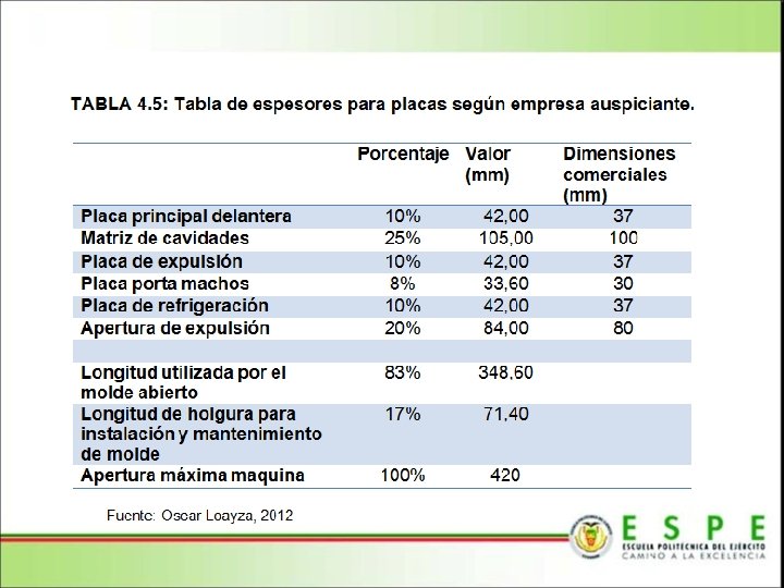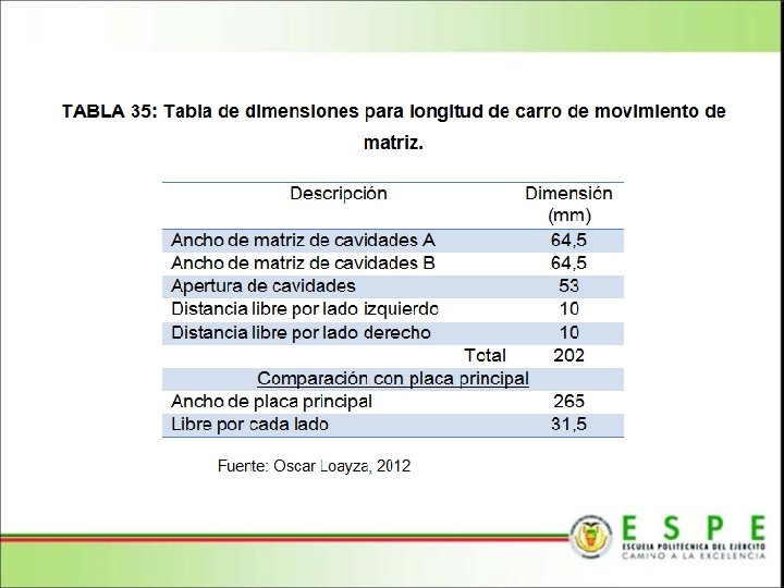 Observamos que el valor de nuestro calculo es menor a 1000 kg/cm 2 lo que nos lleva a concluir que el área de cierre de nuestra matriz de cavidades es adecuada, recalcando que el material va a ser templado luego del proceso de electroerosión, lo que le dará mas rigidez a la matriz.