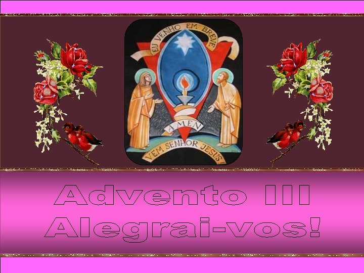 Caríssimos, O advento é o tempo litúrgico que antecede o Natal. São quatro semanas quais somos convidados a esperar Jesus que vem. Nas duas últimas, lembrando a espera dos profetas e de Maria, nos preparamos mais especialmente para celebrar o nascimento de Jesus em Belém. Nesta 3ª semana a cor litúrgica é o rosa, indica justamente o Domingo da Alegria, ou o Domingo Gaudette, onde transborda nosso coração de alegria pela proximidade da chegada do Senhor. Meditemos. Carinhosamente, Graziela