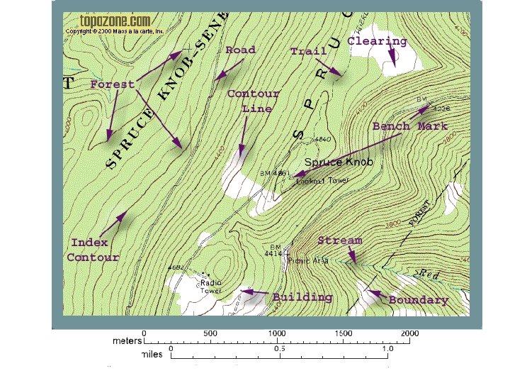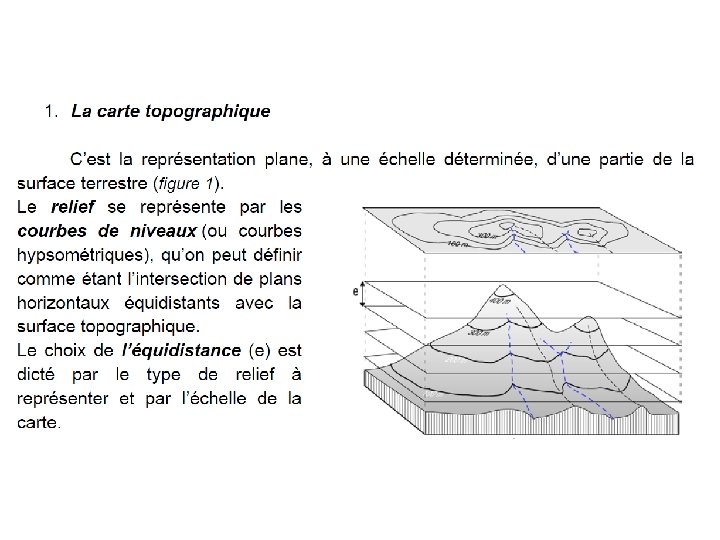 Équidistance Carte topographique Profil topographique Équidistance– c’est la différence d’altitude entre deux courbes de niveau successives. Elle reste la même pour toute la carte. L`équidistance est donnée dans la légende du carte. Les courbes de niveau permettent de représenter le relief sur les cartes topographiques.