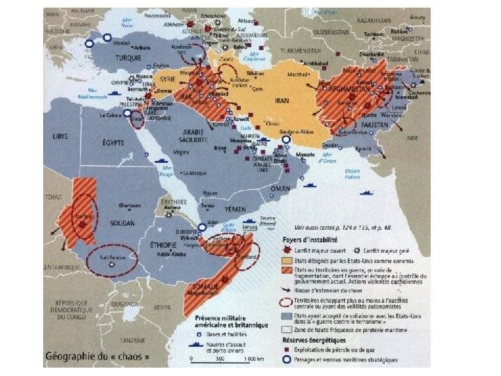 UNE APPROCHE CHRONOLOGIQUE : Quels événements ont plongé le pays dans une situation d’instabilité depuis plus de 30 ans ? L’invasion soviétique (1979 -1989) L’impossible stabilité (1989 -2001) L’intervention de l’OTAN (2001) LES CAUSES DE L’INSTABILITÉ ET L’ÉCHEC DES INTERVENTIONS SUCCESSIVES Incapacité à comprendre l’environnement naturel et socio-ethnique Armée inadaptée aux techniques de la guérilla Soutien militaire, logistique et financier des insurgés par l’extérieur Accélération de la résolution de la Guerre froide Faiblesse de l’Etat du fait des rivalités entre ethnies, factions … Radicalisation des fondamentalismes musulmans Développement des pratiques terroristes Soutien financier extérieur (pétromonarchies) Effectifs militaires insuffisants pour contrôler le territoire malgré un investissement technologique important Difficultés à saisir les traditions afghanes, la subtilité des rapports sociaux et les relations ethniques Faible légitimité et corruption du pouvoir mis en place Rôle fondamentale des structures naturelles et socio-ethniques dans la chronologie des événements Importance du contexte international qui influence les conflits internes