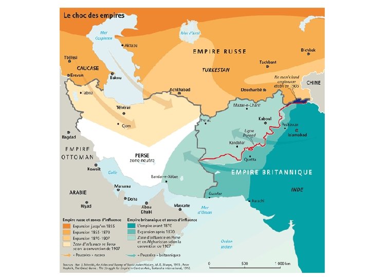 Les héritages des ambitions coloniales Deux empires coloniaux concurrents dans les années 1870 -1910 Empire russe Empire britannique La ligne Durand de 1893 à la suite des échecs des tentatives d’invasion britannique