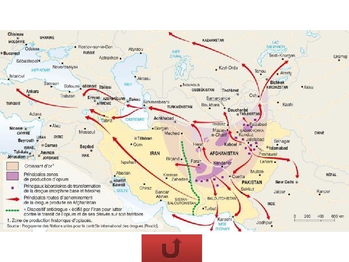 Un intérêt géostratégique : contrer l’encerclement américain (Irak, Asie centrale, Afghanistan) L’ENJEU POUR L’IRAN : s’affirmer comme une puissance capable d’influencer ses voisins afin de garantir sa sécurité. Un intérêt ethnico-religieux : protéger les Hazaras chiites, oppressés les Pachtounes et retrouver une influence sur l’Ouest, considéré comme iranien. Un intérêt sécuritaire : combattre le trafic de drogue, dont l’Afghanistan est le foyer mondial de production et l’Iran, un espace de transit et de consommation