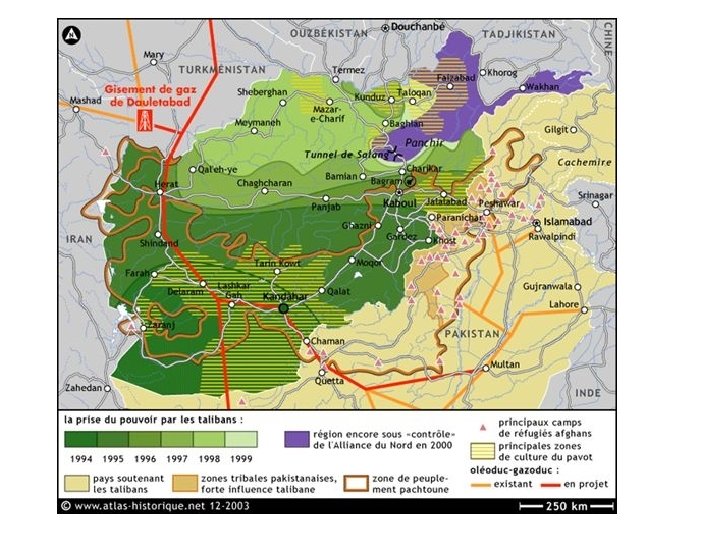 Les héritages des ambitions coloniales Deux empires coloniaux concurrents dans les années 1870 -1910 Empire russe Empire britannique La ligne Durand de 1893 à la suite des échecs des tentatives d’invasion britannique Un Etat-tampon, reconnu indépendant en 1919. Sous influence britannique Comportant un No man’s land anglo-russe depuis 1905