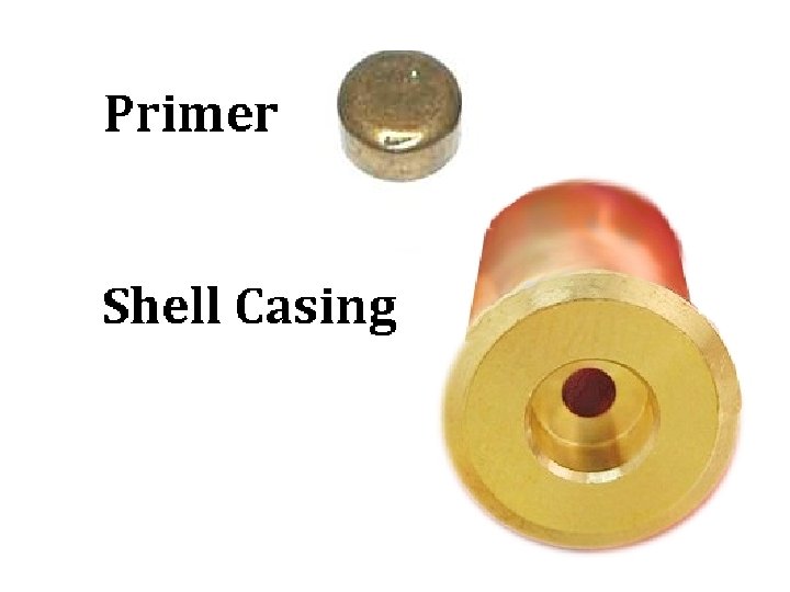 Primer • The ignition system for the propellant. • A high explosive that reacts upon impact. It produces a flame that travels through a hole in the base of the cartridge and ignites the propellant. (Gunpowder)