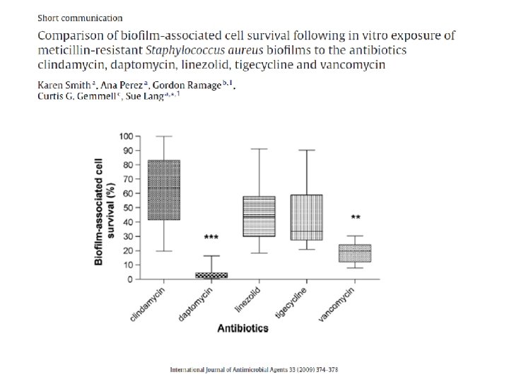 Q 5 : Quelle antibiothérapie adaptée ? • • • Daptomycine rifampicine Rifampicine linezolide Vancomycine seule Vancomycine rifampicine