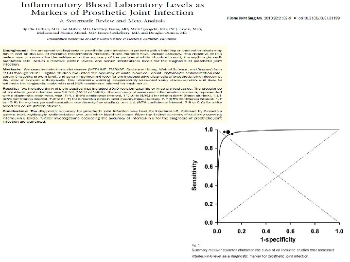 Examens complémentaires pour confirmer le diagnostic ? • Aucun n’est sensible ni spécifique !!! • VS ou CRP normales >>n’élimine pas l’infection. • Dans le mois qui suit l’implantation, la courbe d’évolution de la CRP a une valeur diagnostique mais pas la VS • Biologiquement, à 3 mois de l’implantation – une VS > 22 -30 mm : • sensibilité 82 -93 % • spécificité 84 %, – une CRP > 10 à 13, 5 mg/l • sensibilité 91 - 97 % • spécificité entre 86 -92 % SPILF RCP Infections ostéoarticulaires sur matériel 2009