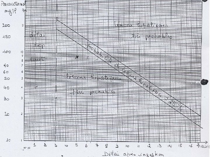 Biologie • Biochimie : bilan N (iono complet) • Toxicologie : – Ethanol : <0. 1 g/l – Salicylés : 46 mg/l (thérapeutique : 150250 mg/l) – ATD tricycliques : inférieur au seuil de détection – Paracétamol : 76 mg/l interprétation : nomogramme de Prescott