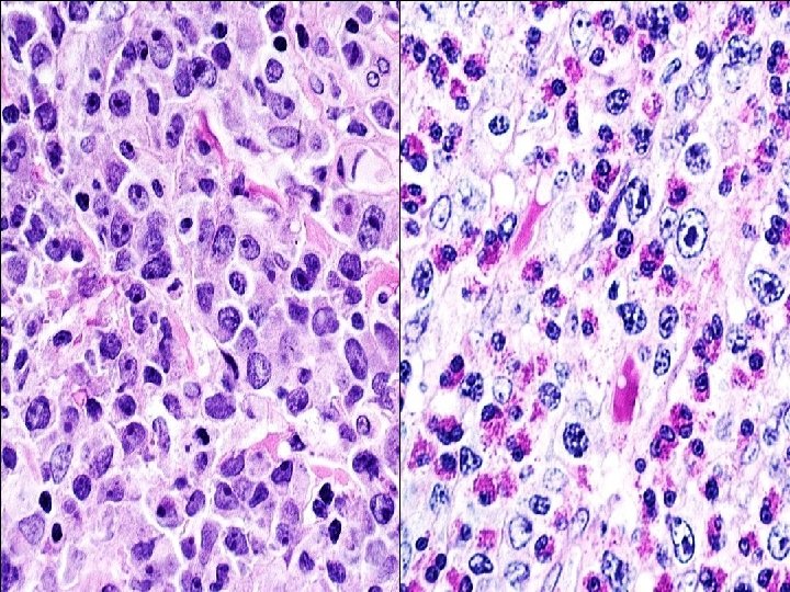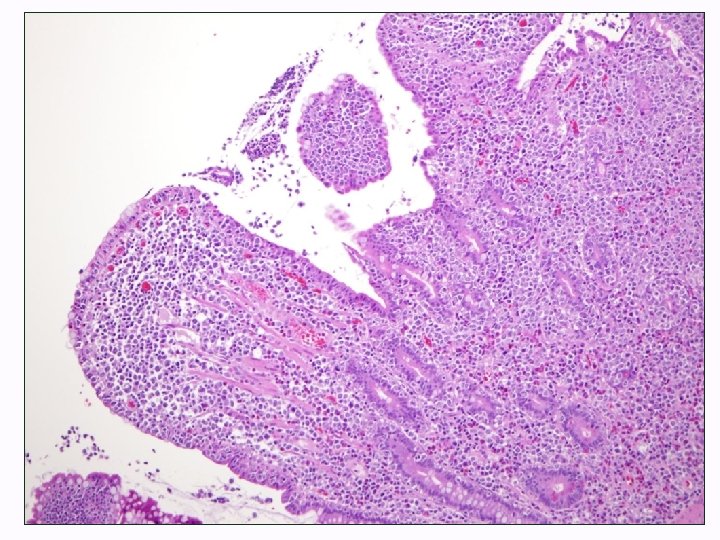 Enteropathy Associated T-cell Lymphoma (EATL) I • Broad morphological spectrum Adjacent mucosa shows villous atrophy • CD 3+, CD 103+, Cytotoxic markers, TCR ab often double negative for CD 4/CD 8, CD 56 • Often presents with intestinal perforation aggressive clinical course with poor prognosis