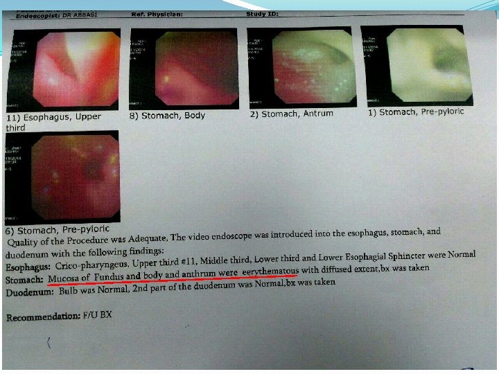Gastric antral biopsy Antral type mucosa with mild chronic active gastritis , focal intestinal metaplasia, incearesed eosinophilic infiltration