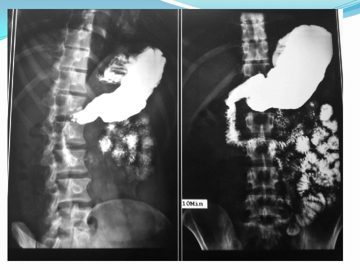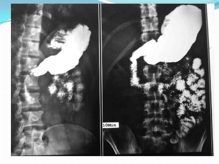 Barium studies of the gastrointestinal tract may suggest the diagnosis but are neither sensitive nor specific. They typically reveal thickening or nodularity in the antrum and a thickened or "sawtooth" mucosa in the small bowel.