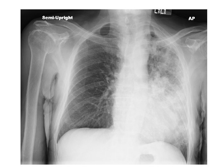 A few hours post-bronchoscopy… • • Tachypneic with RR 30 s Tachycardic to HR 150 s Hypoxic w/ SPO 2 92 on 4 L NC Accessory muscle use. Crackles, most prominent over left upper lung field. Decreased breath sounds, more prominent on left side • ABG 7. 5 / 22 / 65 / 20 / 93, lact 3. 4 • Transferred to MICU for new sepsis secondary to HCAP ; Rx vancomycin and cefepime