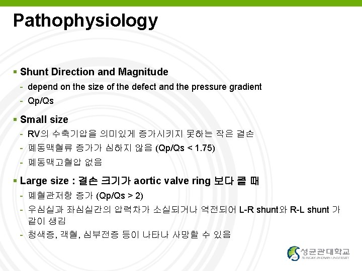 VSD Natural Course Eisenmenger or Severe PHT Usually after 1 yr of age Contraindications for op d/t PHT - PVR > 8 -10 Wood unit - No response to pulmonary vasodilators such as O 2 or nitric oxide - Mainly R-L shunt or no L-R shunt through VSD YOUR LOGO